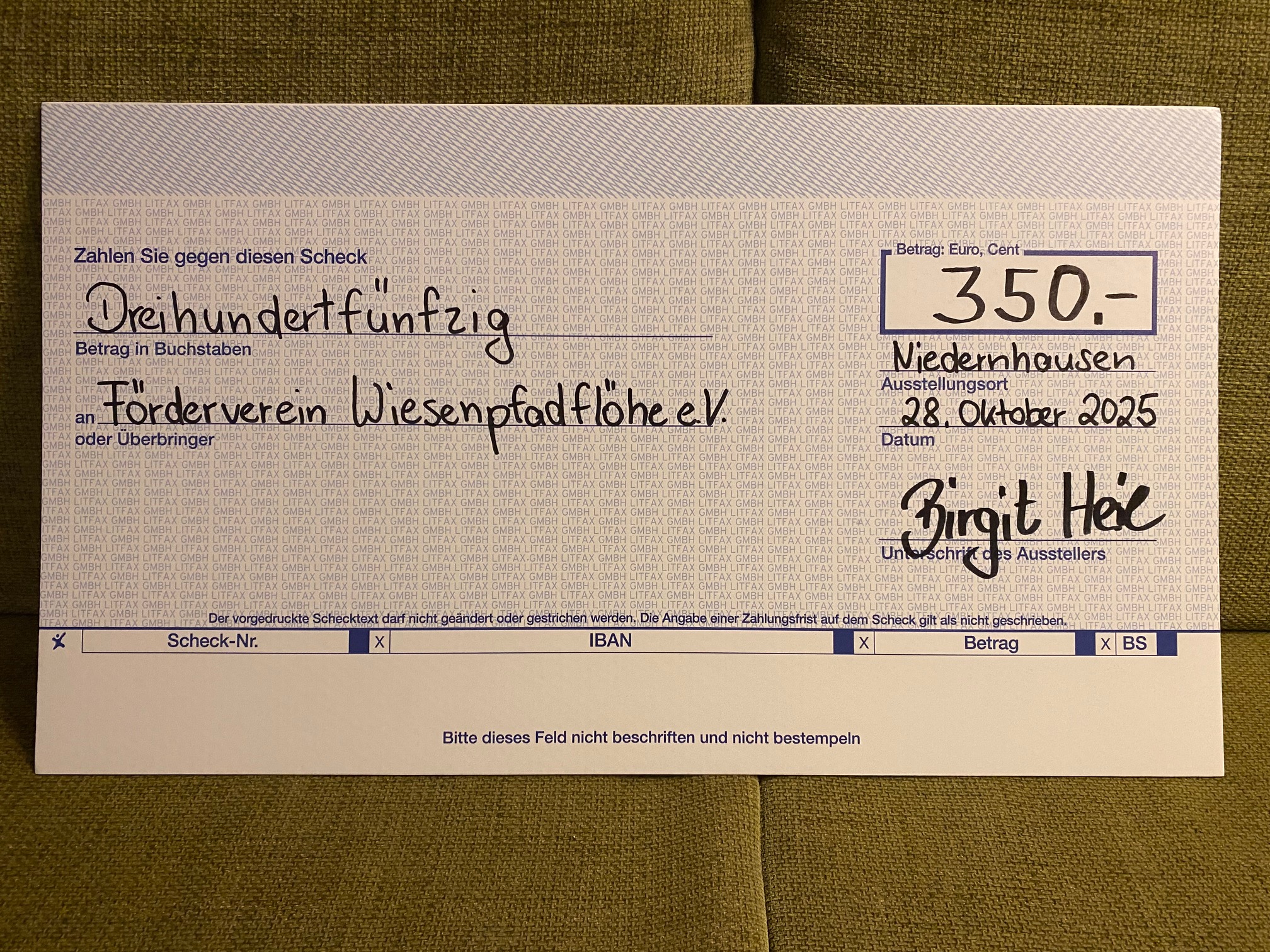 Großzügige Spende an den Förderverein Wiesenpfadflöhe e.V. von Birgit Heil